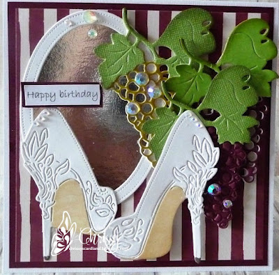 Love the design Chrissy and the grapes are brilliant. The shoes and mirror are just amazing!! This card I am sure, will be kept and treasured by your daughter. It's wonderful Chrissy. Big hugs, Carol S.xxxx
