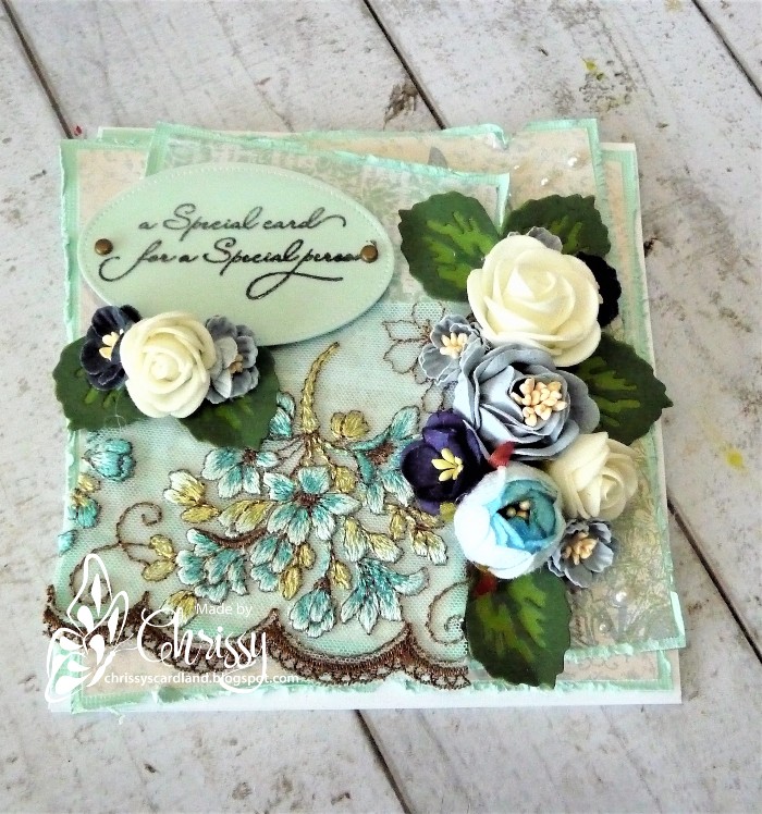 Gorgeous card Chrissy love all the flowers and beauitful lace