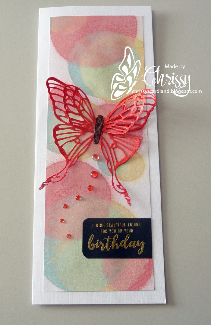 Yay! Don't you love a good find?! I'm excited to see what you do with it! Your slimline card is just colorful and stunning! That butterfly is quite gorgeous with it's red dimensional wings and I love the circled background you've made for it!